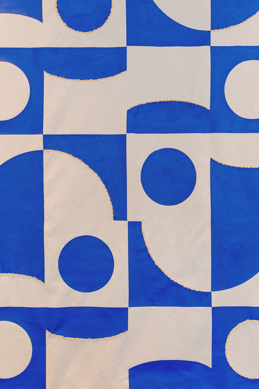 Azure arises from materials such as organic fabric, acrylic paint, embroidery, and concrete, combining modernist influences with a timeless purpose: embodying peace.