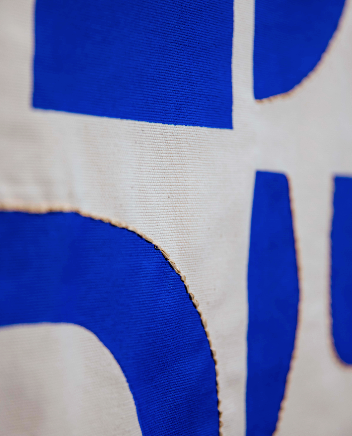 Fluidity in geometry #1 reveals the balance between restraint and spontaneity. With natural cotton as its foundation, the piece weaves together organic materials and structured lines in a quiet yet bold visual rhythm. The raw textures of raffia interplay with painted shapes, creating movement within symmetry—offering both balance and motion. Held by a subtle brass support, this artwork stands as a tactile meditation on the geometry found in nature and craft.