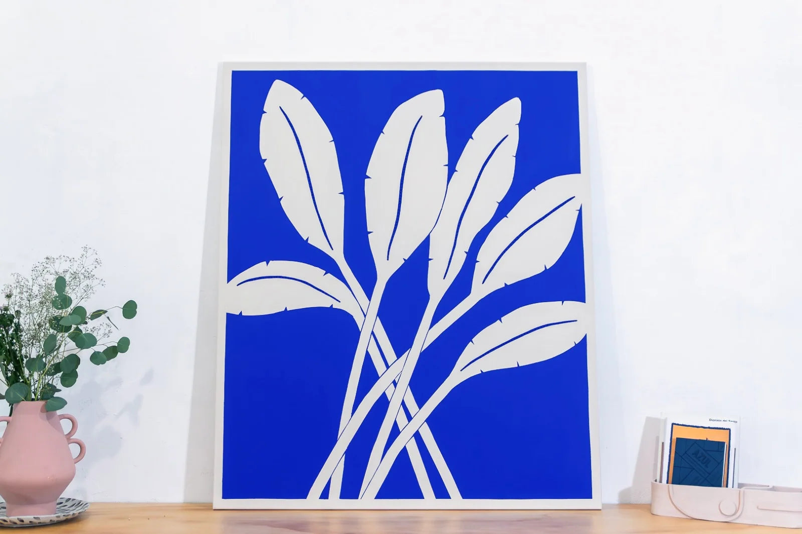 Rooted in quiet strength and organic elegance, Grove #1 is a large-format textile work that echoes the stillness of a forest clearing. Layers of acrylic across textured cotton canvas, while hand-embroidery with blue glass threads introduces a shimmer—like light breaking through leaves. Both structured and soulful, the piece honors the grounding power of nature and the refined beauty of the handmade. A centerpiece designed to anchor and uplift.