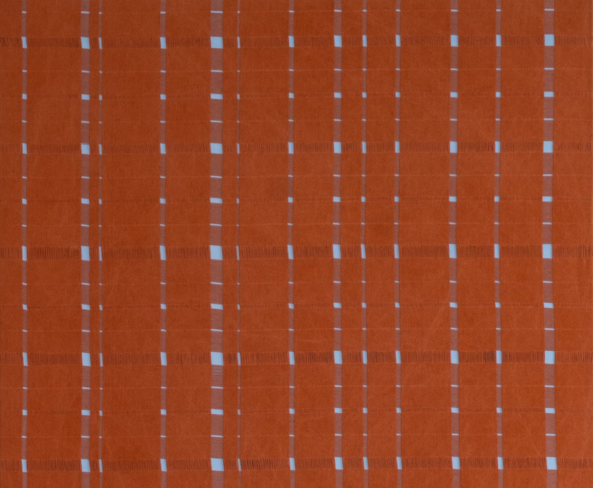 Hand shredded terracotta cotton fabric, raw cotton fabric and acrylic paint.